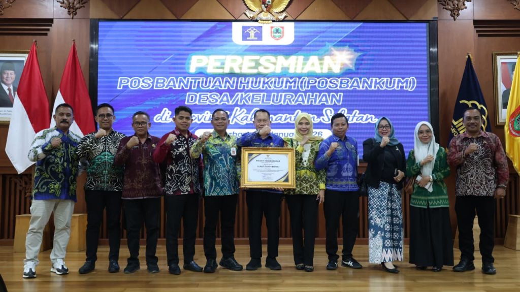 Penghargaan diserahkan langsung oleh Menteri Hukum RI, Supratman Andi Agtas kepada Bupati Andi Rudi Latif melalui Asisten Perekonomian dan Pembangunan, Eryanto Rais, pada kegiatan peresmian 2.015 Posbankum se-Provinsi Kalimantan Selatan yang digelar di Banjarbaru, Jumat (30/1/2026).