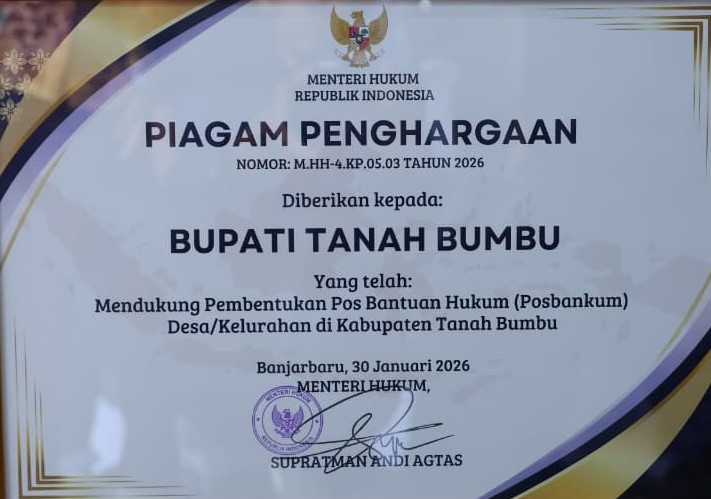 “Penghargaan dari pemerintah pusat ini diharapkan semakin memotivasi Tanah Bumbu untuk terus menghadirkan layanan hukum yang dekat, ramah, dan berpihak pada kebutuhan warga”, ujarnya.