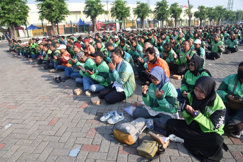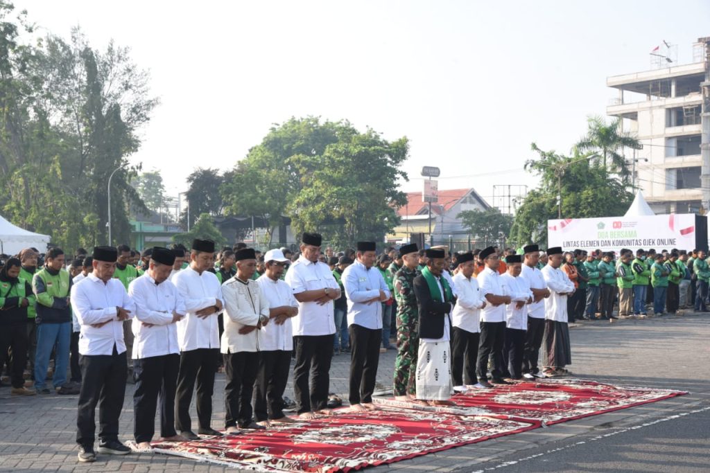 SIDOARJO Suksesi Indonesia.com– Ribuan Ojek Online/Ojol se Kabupaten Sidoarjo berkumpul di parkir Timur GOR Sidoarjo, Jumat, (5/9). Pemkab Sidoarjo mengajak mereka untuk doa bersama bagi almarhum Affan Kurniawan. Doa bersama diawali dengan sholat ghoib bagi mendiang Affan Kurniawan. Sholat ghoib dipimpin Pengasuh Ponpes Al Basuni Siwalanpanji Buduran Gus Hasan Jamil Kholil. Usai sholat mereka juga memperoleh 5 kg beras. Selain itu Pemkab Sidoarjo juga memberikan mereka kartu BPJS Kesehatan.