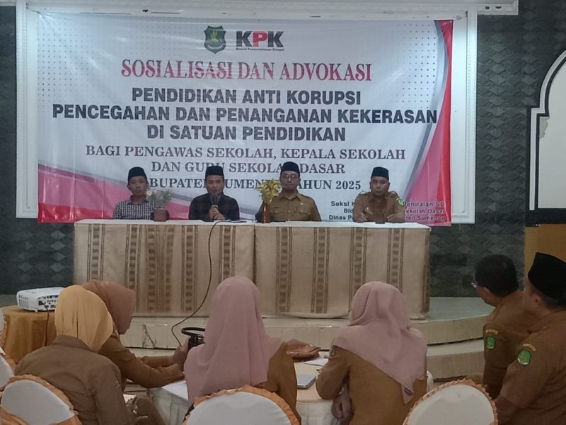 Kegiatan yang dibuka Kepala Bidang Pendidikan Sekolah Dasar Dinas Pendidikan kabupaten Sumenep, Andriansyah Ali Sochibi juga dihadiri dari Dewan Pendidikan Kabupaten Sumenep (DPKS), serta menghadirkan pemateri dari Penyuluh Utama Anti Korupsi KPK yang juga Pegawai Inspektorat kabupaten Sumenep, Badrul , serta Tim dari sekolah’ ramah anak dan Dinas Sosial Pemberdayaan Perempuan dan Perlindungan Anak (Dinsos P3A) kabupaten Sumenep, bertempat di Gedung HK, Selasa (24/06/2025).