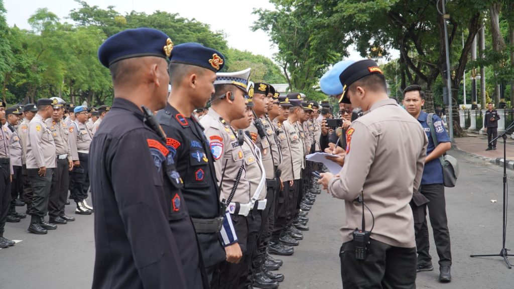 SURABAYA Suksesi Indonesia.com– Polrestabes Surabaya melaksanakan apel gelar pasukan dalam rangka kesiapsiagaan pengamanan aksi unjuk rasa di wilayah Kota Surabaya, pada Kamis (27/11). Kegiatan tersebut dipusatkan di depan kantor Gubernur Jalan Pahlawan Surabaya dengan melibatkan seluruh jajaran kepolisian terkait.