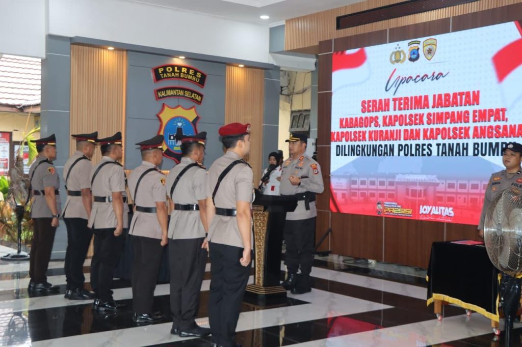 Tanah Bumbu — Kapolres Tanah Bumbu AKBP Arief Prasetya, S.I.K., M.Med.Kom., memimpin langsung upacara serah terima jabatan (sertijab) sejumlah pejabat utama dan Kapolsek jajaran Polres Tanah Bumbu, yang dilaksanakan pada hari Kamis, 29 Januari 2026, bertempat di Pendopo Gajah Mada Polres Tanah Bumbu.