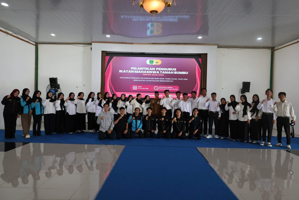 – Pengurus baru Ikatan Mahasiswa Tanah Bumbu (IKMA Tanah Bumbu), Kalimantan Selatan, resmi dilantik untuk periode 2025–2026. Pelantikan berlangsung di Pendopo Serambi Madinah, Senin (26/01/2026), dan dikukuhkan oleh Bupati Tanah Bumbu Andi Rudi Latif melalui Staf Ahli Bupati Bidang Kemasyarakatan dan SDM, Khairudin.