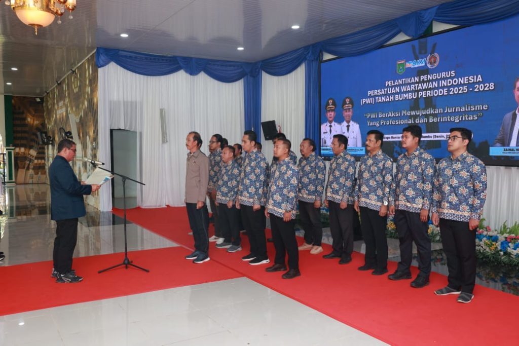 Persatuan Wartawan Indonesia (PWI) Kabupaten Tanah Bumbu resmi memiliki kepengurusan baru untuk periode 2025–2028. Pelantikan tersebut ditandai dengan pengukuhan Ketua PWI Tanah Bumbu, Selamat Riyadi beserta pengurus, oleh Ketua PWI Provinsi Kalimantan Selatan, Zainal Helmi, di Pandopo Kantor Bupati, Batulicin. Senin (21/07/2025).