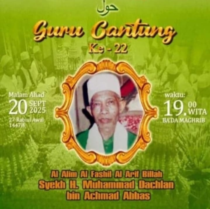 Haul KH.Muhammad Dachlan Cantung yang ke 22. Kabupaten Kota Baru Kalimantan -Pada malam yang penuh berkah, Sabtu, 20 September 2025, Desa Sungai Kupang, Kecamatan Kelumpang Hulu, Kabupaten Kotabaru, menjadi saksi bisu akan kehadiran ribuan jemaah yang berkumpul untuk memperingati haul ke-22 KH. Muhammad Dachlan bin Achmad Abbas, yang lebih dikenal sebagai Guru Cantung. Acara dimulai sekitar pukul 19.00 WITA, dengan pembacaan Surah Yasin, Maulid Habsyi, tahlil, dan doa haul, membawa suasana khidmat yang penuh kekhusyukan.