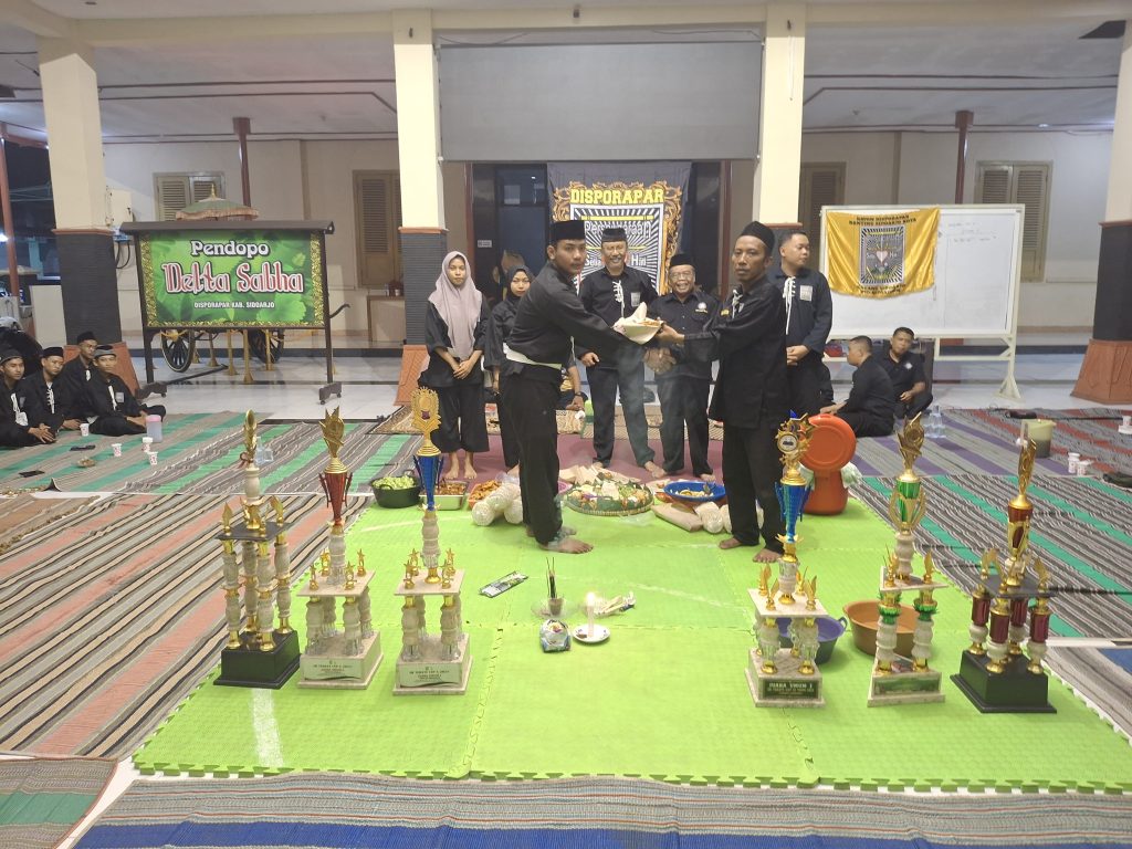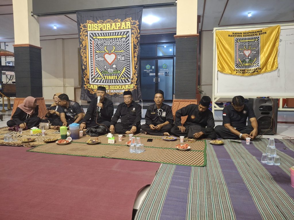 SIDOARJO Suksesi Indonesia.com– Persaudaraan Setia Hati Terate (PSHT) Rayon Disporapar Ranting Sidoarjo kota Cabang Sidoarjo Pusat Madiun menggelar tasyakuran warga baru tahun 2024. Kegiatan ini dilaksanakan di Pendopo Delta Sabha Disporapar Kabupaten Sidoarjo Selasa ( 16 Desember 2025 ) malam